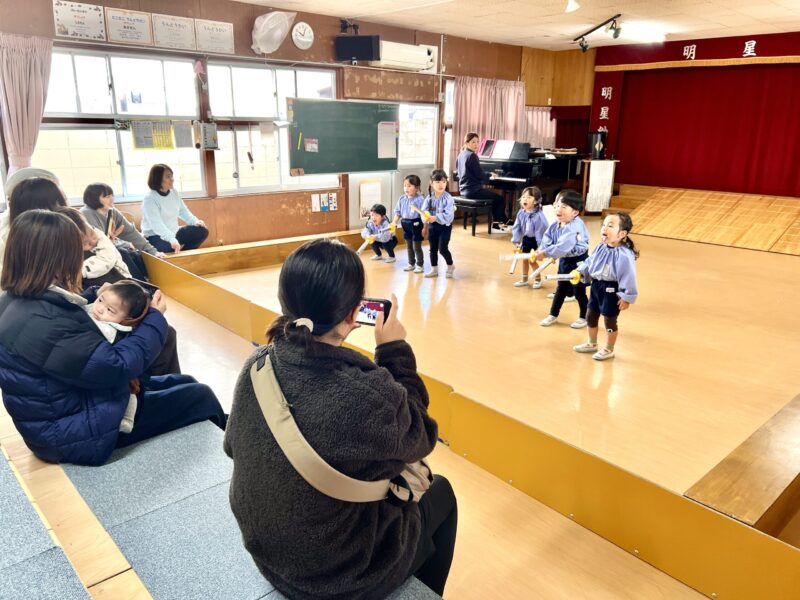特に2歳児の保護者の方は、事前に配布した発表会の案内プリントの内容について、実際にご覧になって、「練習ではない」「メロディーを感じながら動く」など、の意味がご理解いただけたのではないでしょうか。